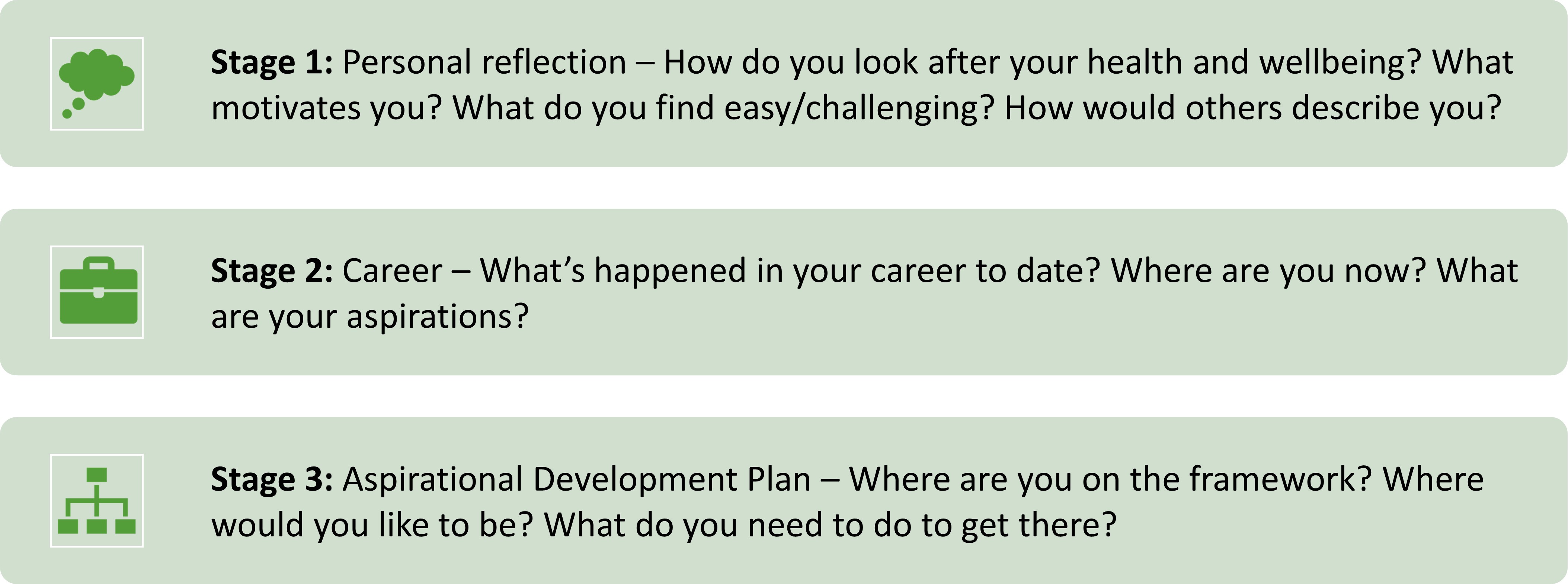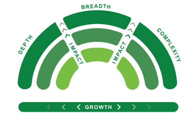 There are three categories – depth, breadth and complexity – recognising that some people may want to stay in role, change role completely, or take the next step in their career.