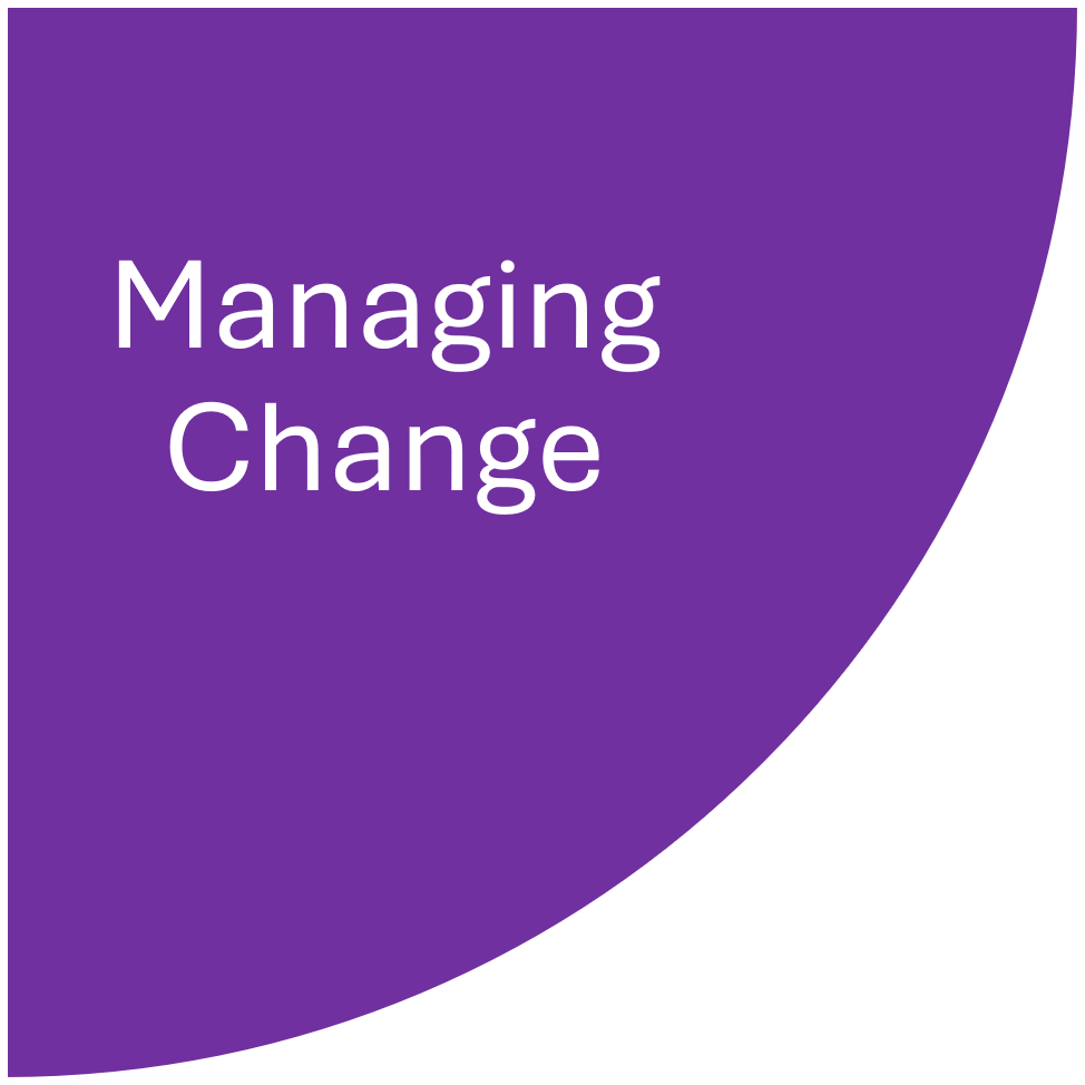 Managing through change e-learning - This module will help you to understand how people respond to change and therefore allow you to better support your own team through a period of transition.School for Change Agents - Develop the skills to make a difference & create change in your organisation. On this course, you will build the skills, confidence, and supportive community needed to create change in an evolving environment.